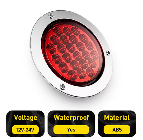 4 Inch Round Steel Chrome Bezel 24Leds Tail Signal Stop Brake Lights