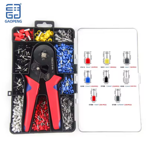 Ferrule Crimping Tool Kit 1200PCS Wire Connectors AWG23-7 Copper Tubular End Wire Terminals Sawtooth Ratchet